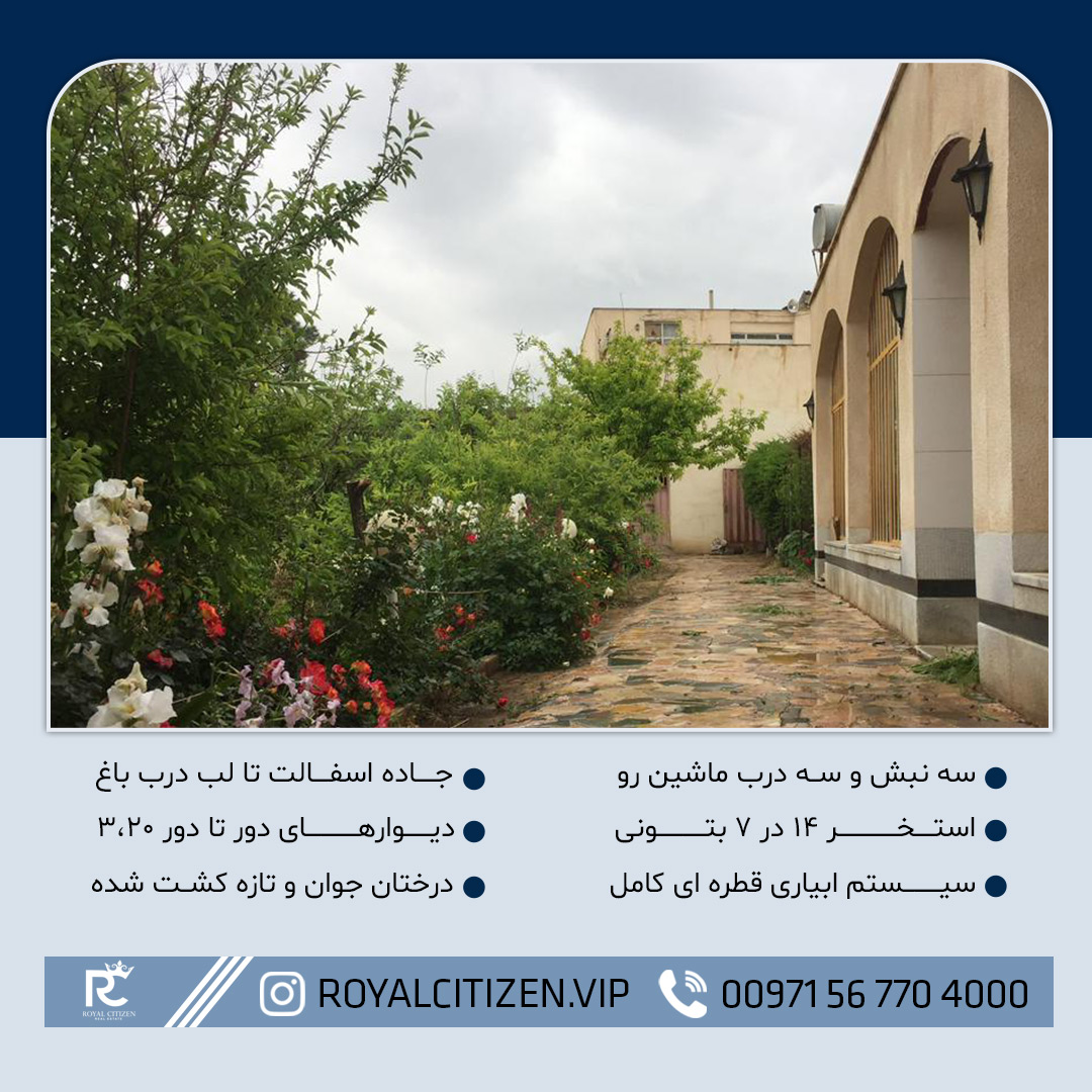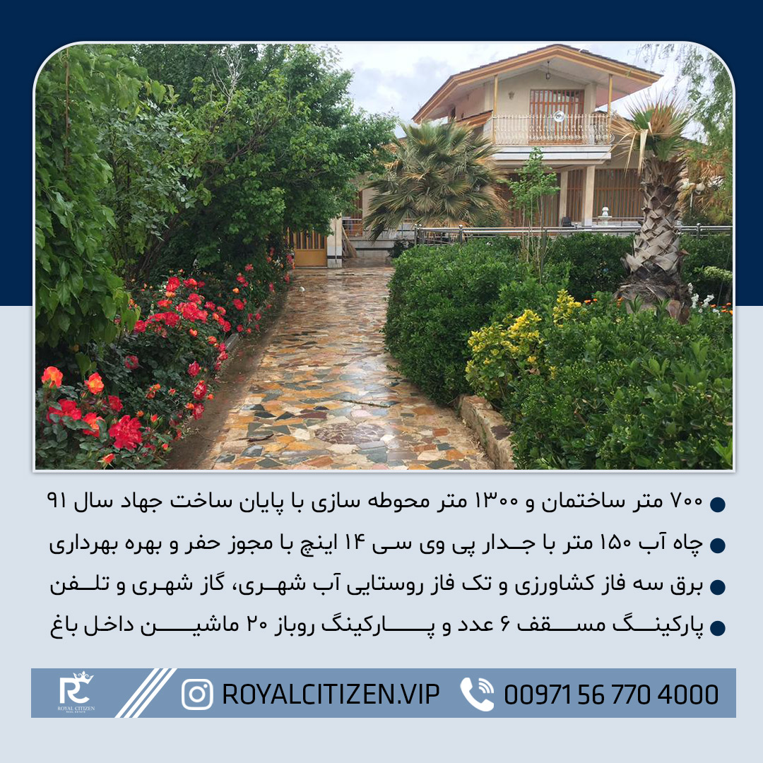 پارکینگ مسقف ۶ عدد و پارکینگ روباز ۲۰ ماشین داخل باغ